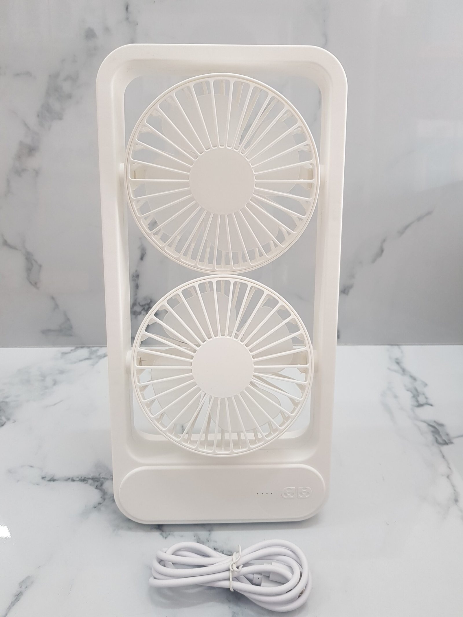 Fabricado con materiales de alta calidad, el Ventilador Escritorio Doble Portátil es duradero y seguro de usar. Incorpora un sistema de protección que evita el sobrecalentamiento, garantizando un uso prolongado sin riesgos. Además, su fácil limpieza y mantenimiento aseguran que siempre esté en condiciones óptimas para su uso diario. No importa si es verano o invierno; este ventilador es una excelente adición a tu espacio personal.